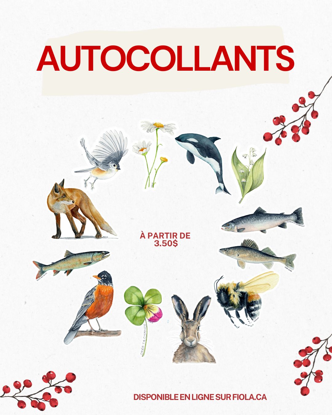 Amoureux de Nature 3.50 $ – 3.95 $Plus jeune, je collectionnais les autocollants avec lesquels je me racontais des histoires toutes plus fantastiques les unes que les autres. C’est donc avec une grande joie que je vous présente aujourd’hui ma collection personnelle d’autocollants. Que du bonheur !